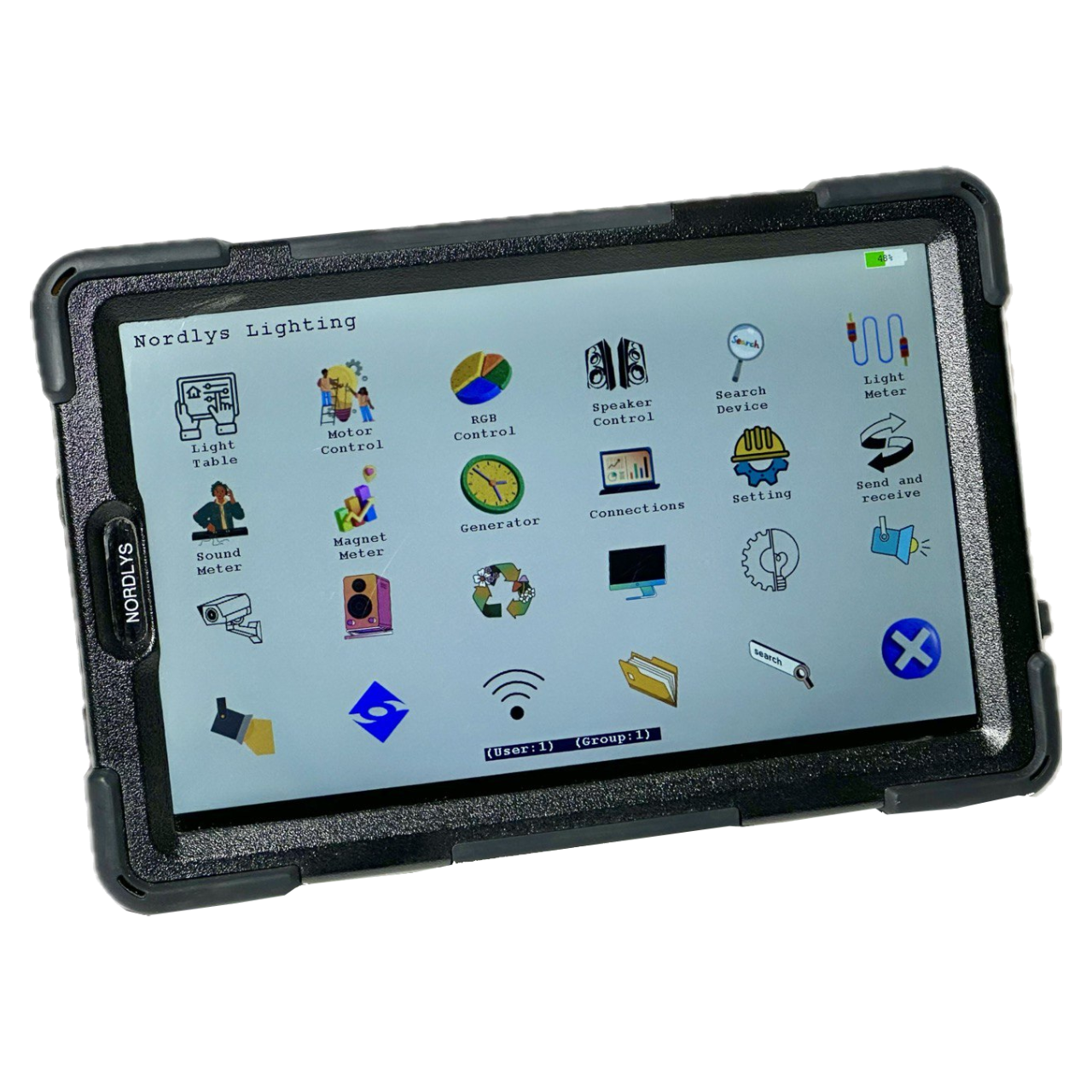 Visualize an environment that you can take control of all the NORDLYS devices in that place Wirelessly, through TANYA which is equipped with several digital sensors that makes it a true IOT device ; we can claim TANYA is smart enough to recognize all of NORDLYS On-Devices in The environment. when ever user attempts to SEARCH them,TANYA is able to show which NORDLYS Devices are ON and even show the features of that devices (power, addresstype, etc) therefore by accessing to the Menu of the desire device, user can change the address and other parameters of it by TANYA without any need of reaching to the device itself; ofcourse accessing to the device installed in height wouldn't be that much easy unless you have a NORDLYS TANYA!