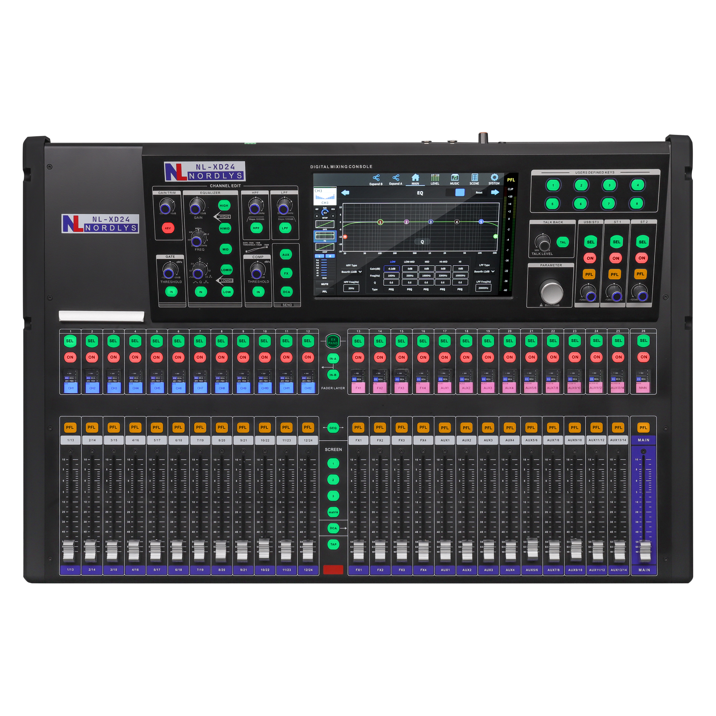● Each channel fader supports user-defined layer functions